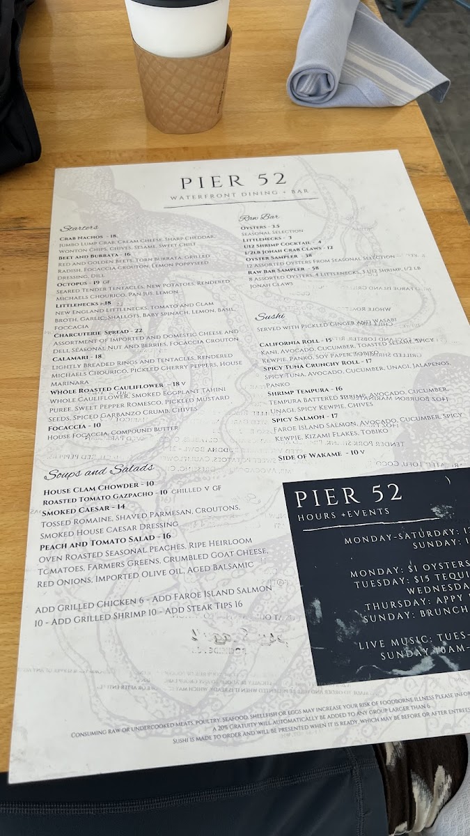 Whether it's a romantic date night or a gathering with friends, Pier 52 promises a memorable experience filled with good food and great company.